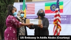 ኤምባሲ ኣመሪካ ኣብ አዲስ- አበባ ልዕሊ 4.5 ሽሕ ዝግመት ጆንሶንን ጆንሶንን ዝብሃል ሓንሳብ ዝውሰድ ክታበት ኮቪድ-19 ንሚኒስትሪ ጥዕና ኢትዮጵያ ከም ዝረከበ ኣብ ዝዘርግሖ ጋዜጣዊ መግለጺ ኣፍሊጡ። እቲ ናይ ምርኽኻብ ስነ-ስርዓት ኣብ መንጎ ኣምባሳድር ኣመሪካ ኣብ ኢትዮጵያ ጊታ ፓሲን ስቴትን ሚኒስተር ጥዕና ሰሃረላ ዓብዱላሂን፡ ኣብ ኣብ ማእከል ጥዕና ጃልመዳ’ዩ ተፈጺሙ።