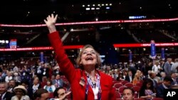 ኣብ መዛዘሚ ዋዕላ ናይቲ ዕለት: ዶናልድ ትራምፕ ብኣዝዩ ምዕሩግ ስነ-ስርዓት ናብቲ መድረኽ ድሕሪ ምእታው ንበዓልቲ ቤቱ መላንያ ትራምፕ ናብ ዋዕለኛታት ኣላልዮም።